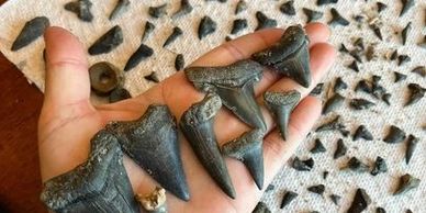 Join us for a private shark tooth and fossil hunt off the coast of Charleston, SC! Step off the boat and start finding treasures right away—no long walks required. With over six years of experience, I guarantee you’ll find plenty of teeth, including the chance to discover a Megalodon tooth like the 7-5/8th inch one I found. On average, we find over 40 teeth per trip, and I’ve never had a disappointed customer.